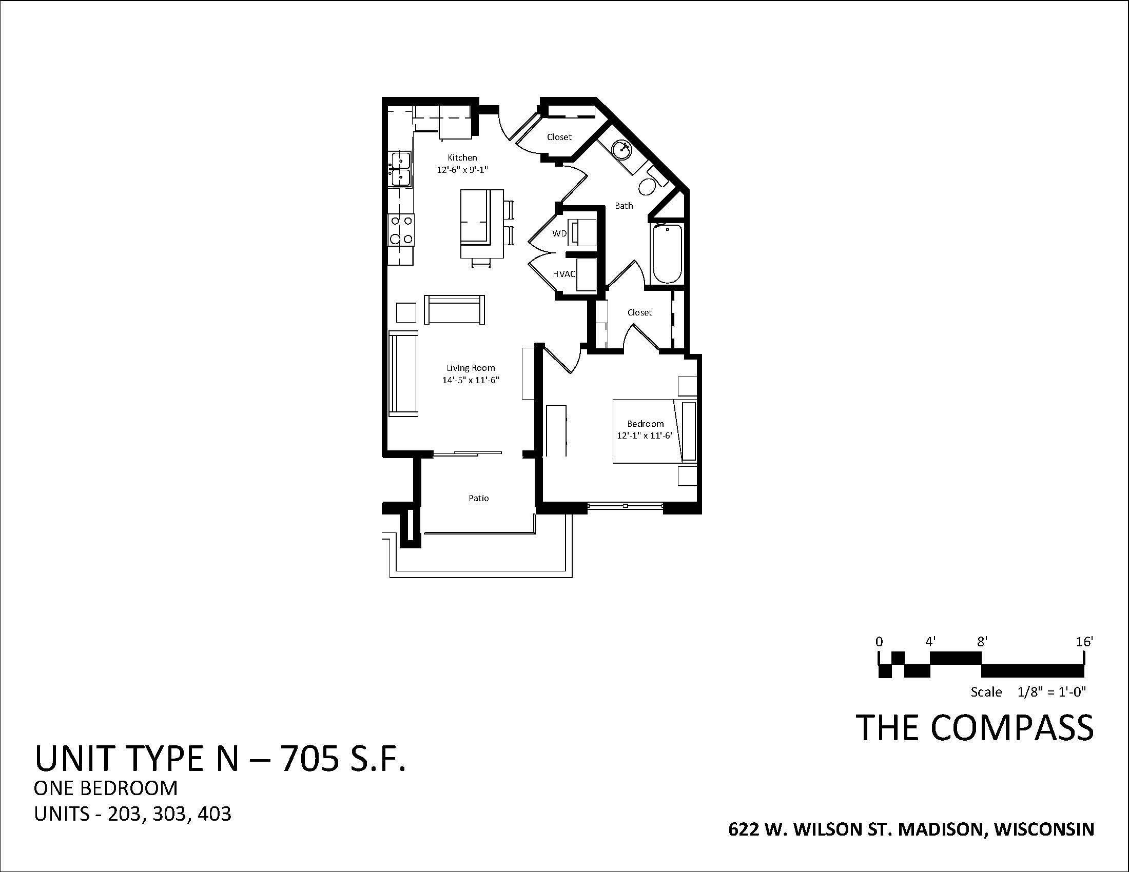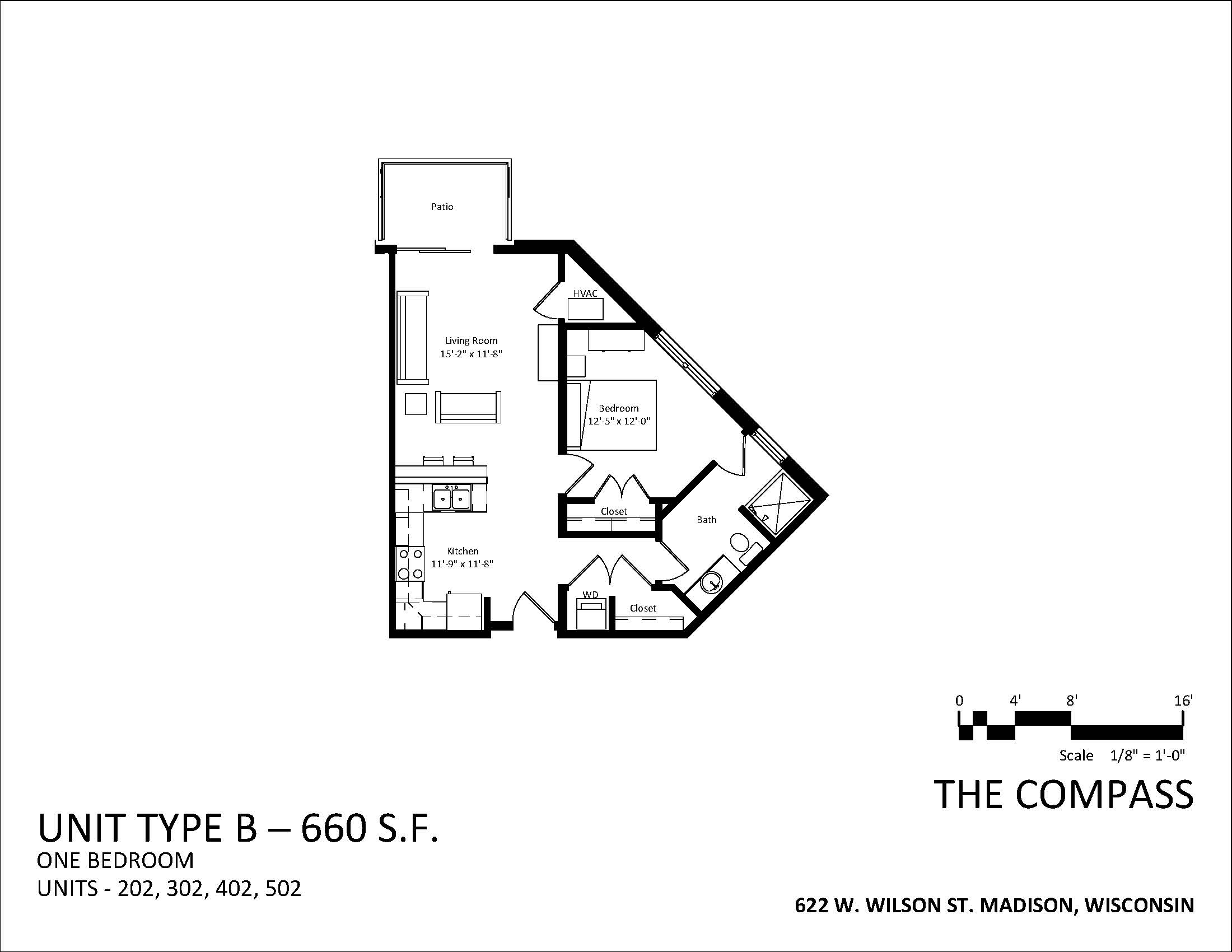 The Compass has studios, one-bedroom accessible units, one-bedroom units, two-bedroom accessible units and two-bedroom units in various layout types.